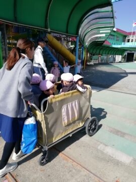 園を出てからすぐ、いつもと違う景色にワクワクが止まりません😊