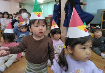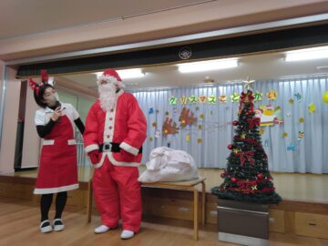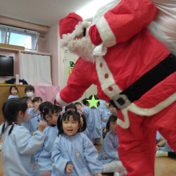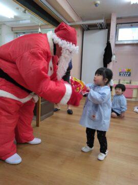 数日前からワクワクのお友だち、サンタさんの登場に大喜びです